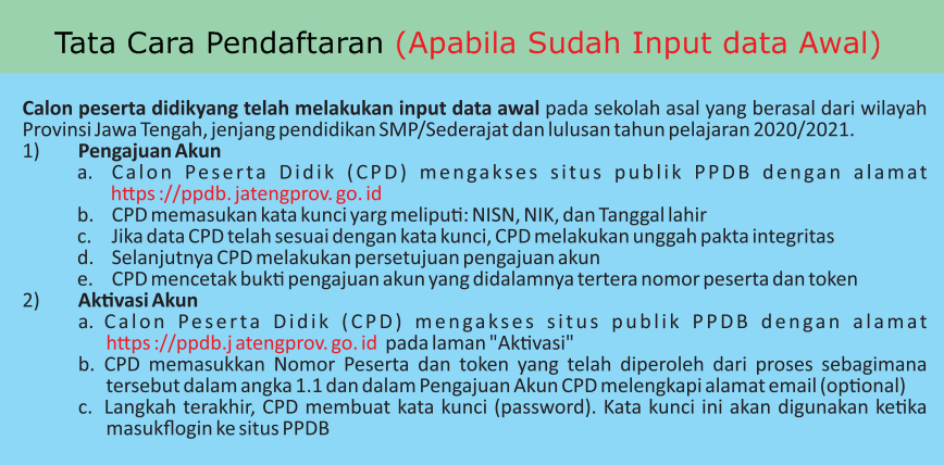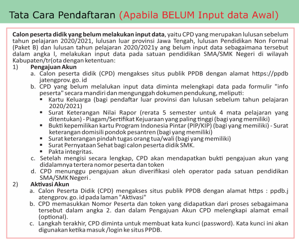 Penerimaan Peserta Didik Baru (PPDB) SMK Negeri 1 Binangun Tahun 2021 dilaksanakan secara online dimana aplikasi disediakan oleh Dinas Pendidikan Provinsi Jawa Tengah dengan system ini di harapkan pelaksanaan PPDB akan berjalan NONDISKRIMINATIF; OBJEKTIF; TRANSPARAN; AKUNTABEL; DAN BERKEADILAN sesuai dengan amanah Peraturan Menteri Pendidikan Dan Kebudayaan RI Nomor I Tahun 2021 tentang Penerimaan Peserta Didik Baru Pada Taman Kanak-Kanak, Sekolah Dasar, Sekolah Menengah Pertama, Sekolah Menengah Atas, Sekolah Menengah Kejuruan dan Peraturan Gubernur Jawa Tengah Nomor 7 Tahun 2021tentang Penerimaan Peserta Didik Pada Sekolah Menengah Atas dan Sekolah Menengah Kejuruan di Provinsi Jawa Tengah;