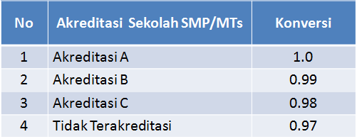 Penghitungan nilai rapor seleksi SMK mepertimbangkan akreditasi sekolah dengan konversi yang ditetapkan sebagai berikut :