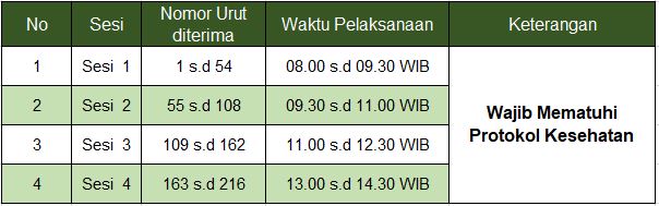 Pelaksanaan daftar ulang pada tanggal 28 Juni 2021 s.d 2 Juli 2021